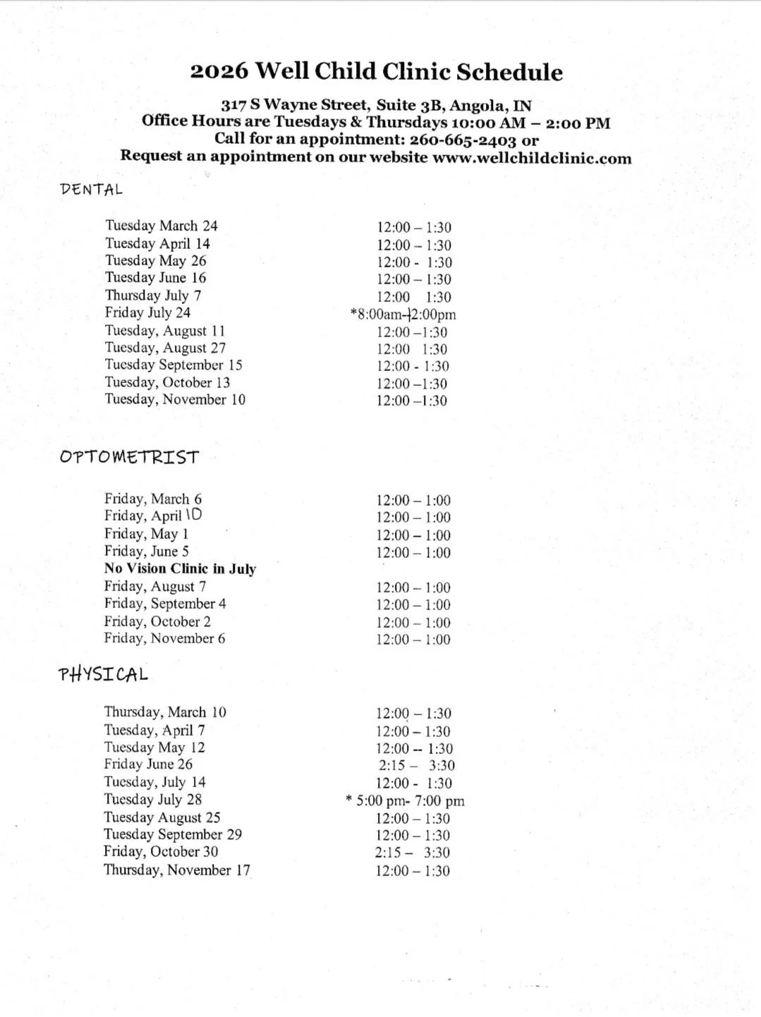 Please fill out this form with the Clinic and Date you would like. Filling out this form does NOT guarantee an appointment. A team member will contact you as soon as possible to confirm the appointment.